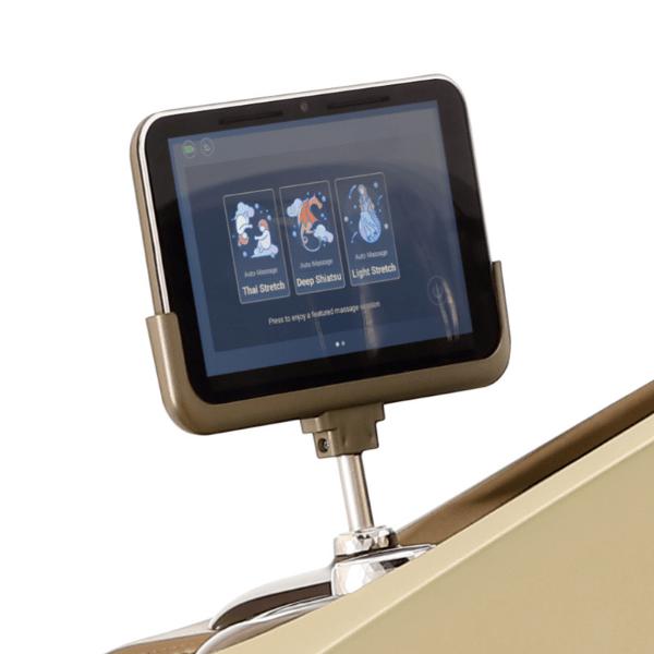 An all-new touchscreen controller panel with pre-programmed massage sessions that make sophisticated use of the chair’s advanced mechanics. The chair also includes a convenient built-in wireless phone charger plus surround-sound wireless Bluetooth speakers that connect to the user’s own music player.
